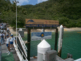 フィッツロイ島では、滞在時間も短いので熱帯雨林を散策するか、ビーチで過ごすか、休憩するかどちらかです。ここから、モアリーフへむけて、また1時間強船に乗ります。 |