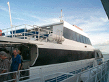 | ホテルを8:40バスで出発。まずケアンズのトリニティーワーフから船でフィッツロイ島へ向かいます。この間、1時間弱、景色を見てすごします。 |