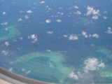 雲が少なければ、飛行機に乗ってまもなくグレートバリアリーフが見えてきます。窓際の人はお見逃し無いように。